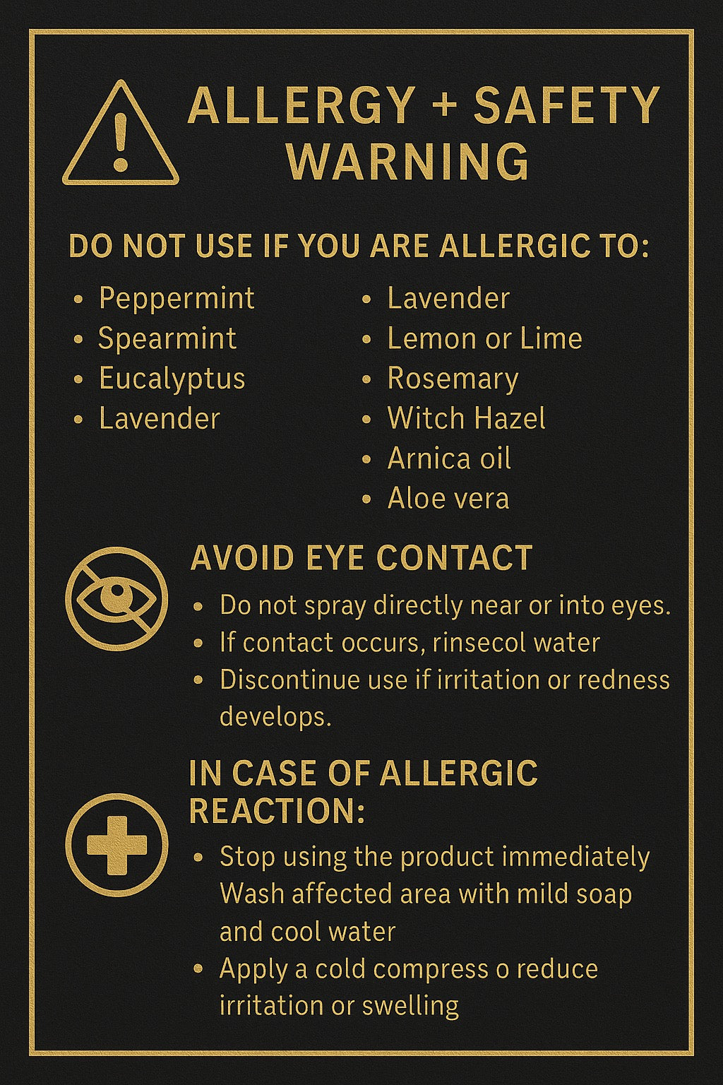 Spray lightly over chest, neck, or pulse points. Roll oil on wrists or behind ears. Use fan and towel for maximum cool-down.